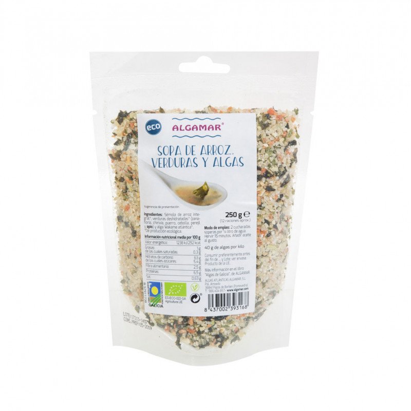 Sopa de arroz verduras y algas 250g Algamar cantidad