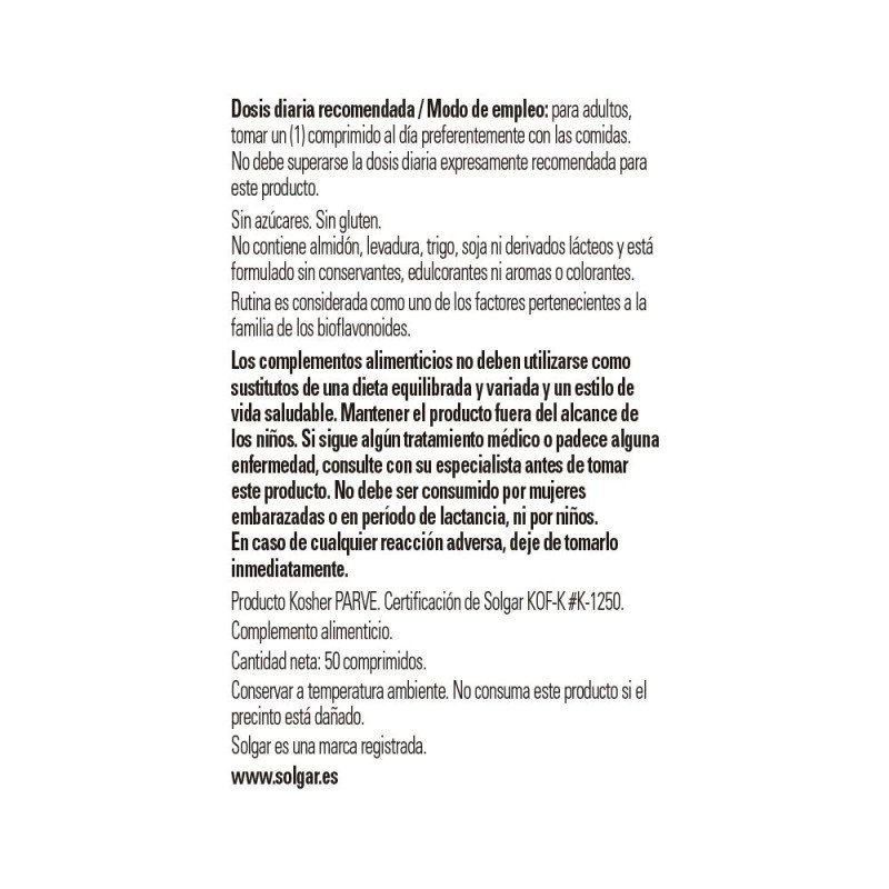 Rutina 500mg 50 comp Solgar cantidad